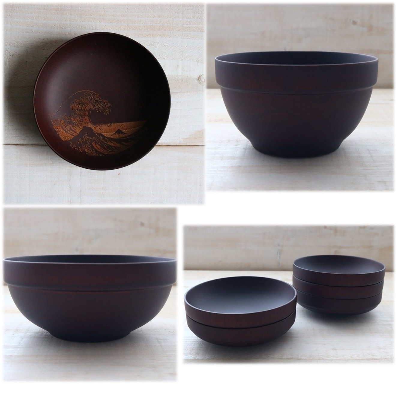品名:木製漆器 表面塗装:ウレタン 素地の材質:天然木 ●たわし・磨き粉は使用不可 ●電子レンジ・オーブン・食器洗浄機及び直火での使用は不可